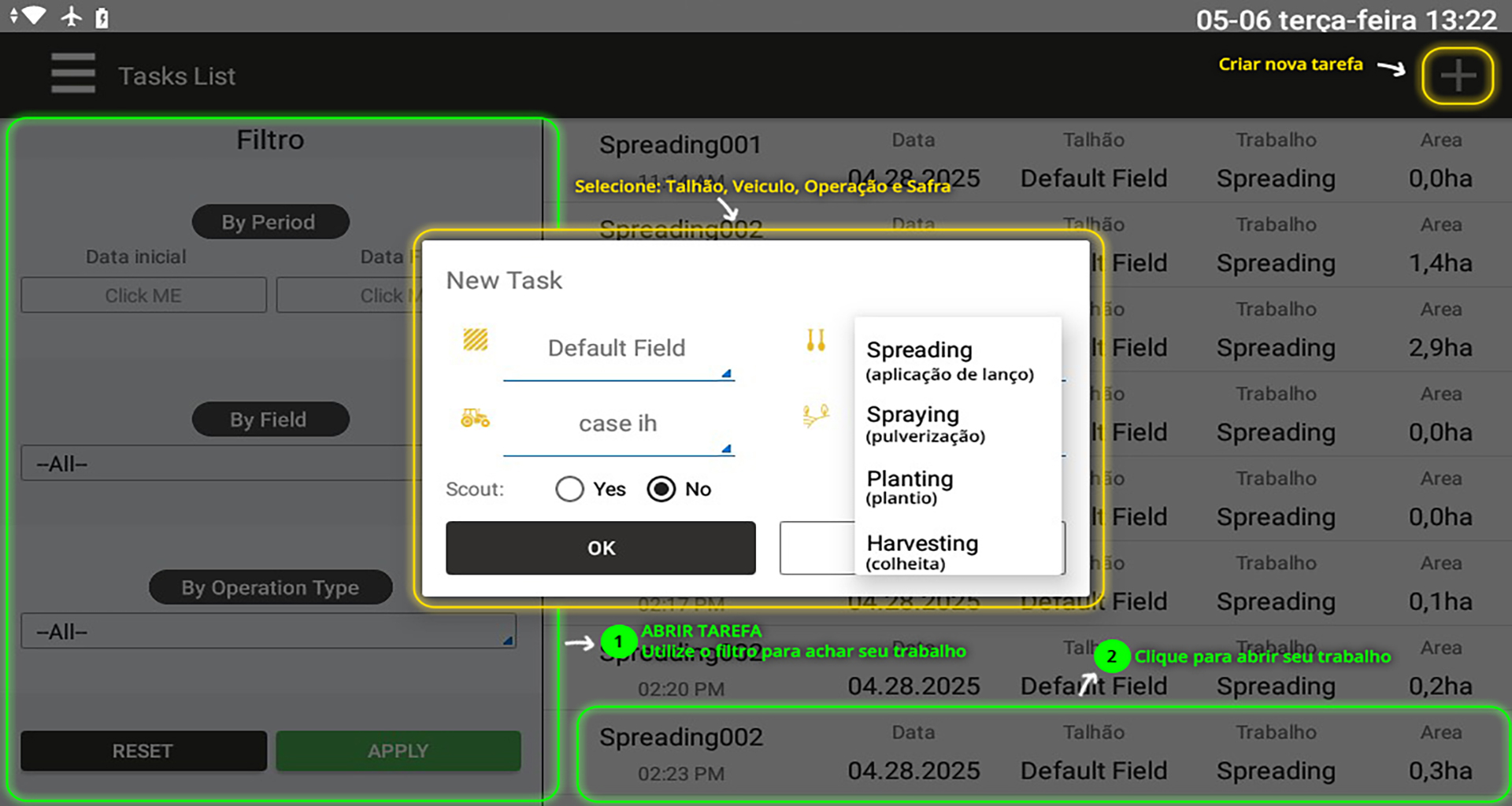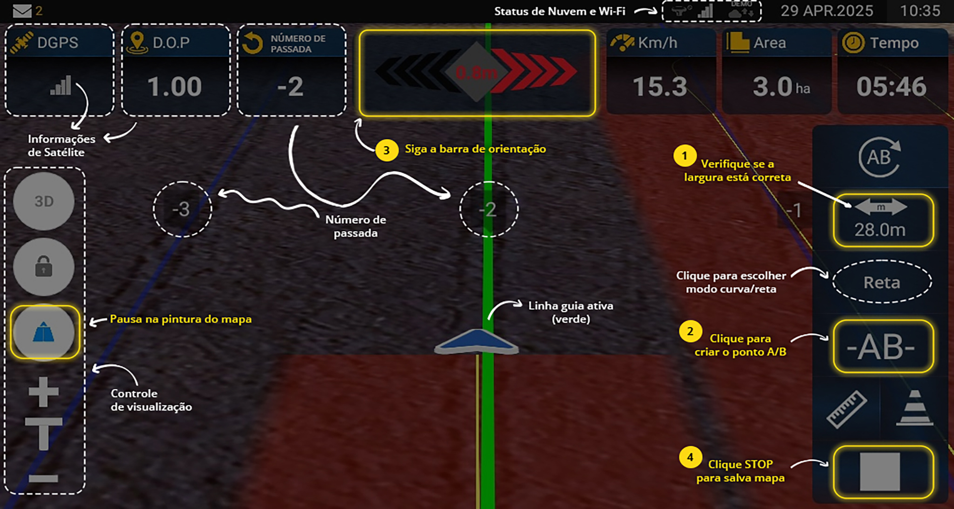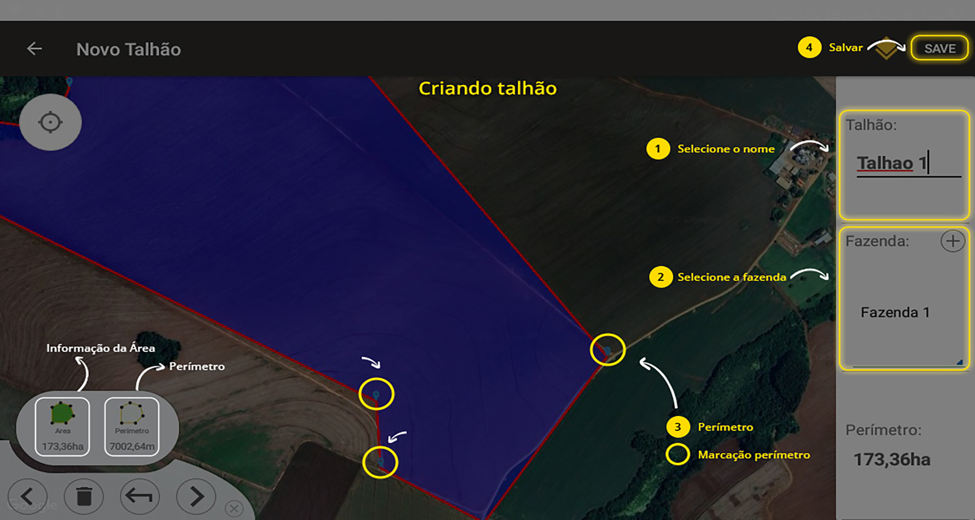 * Lembre que precisa estar conectado a internet para poder carregar a imagem satelital de sua fazenda, apos uma vez feito isso, ela fica salva no monitor e nao precisa internet. Não é necesario caso nao quera trabalhar sobre a imagem satelital.
